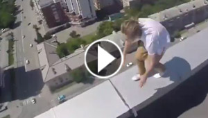 فيديو مثير.. مغامر روسي يتمايل ويتدلى على حافة بناية شاهقة
