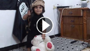 بالفيديو.. طفل داعشي يتدرب على الذبح والرهينة الضحية هي دميته ..