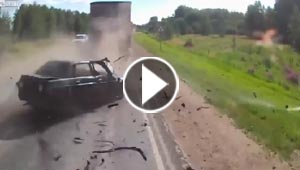 بالفيديو.. تصادم مروع بين مركبتين اثناء محاولة احداها تجاوز ..