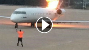 بالفيديو.. اشتعال النار في محرك طائرة قبل الاقلاع ونجاة جميع ..