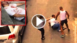 وحش بشري ينزل من سيارته ويوجه الطعنة تلو الطعنة الى سائق اخر.. ..