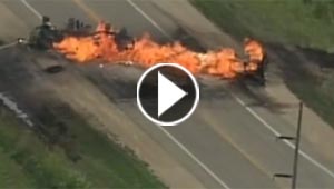 حريق فظيع بعد تصادم مريع.. شاهد كيف اشتعلت المركبة وناقلة ..