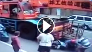 هكذا نجت امرة باعجوبة من عجلات ونش ضخم.. فيديو