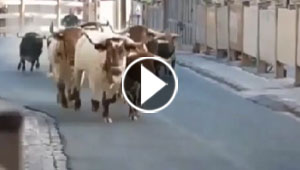 شاهد كيف لاحقت الثيران الهائجة الناس في شوارع اسبانية.. ..