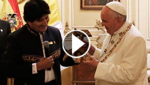 الصليب يعانق المنجل الشيوعي هدية تزعج البابا في بوليفيا