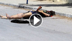 بطل تونسي يرمي الارهابي الداعشي بالسيراميك ويعطل مشروعه ..