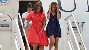 موقف محرج.. الرياح الايطالية تعبث بفستان ميشيل اوباما على ..