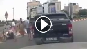 شاهد بالتفصيل كيف تشاجر سائق السيارة مع قائد الدراجة وسط الطريق.. ..