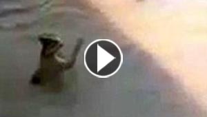 وحشية الانسان تلقي بهرة مسكينة الى فم التماسيح الجائعة.. كن ..