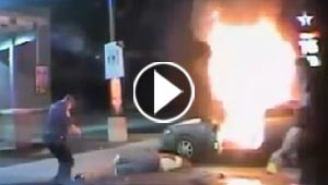 بالفيديو.. انقاذ رجل حاول الانتحار بحرق سيارته في محطة ..