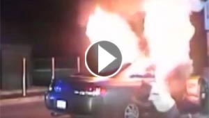 انفجار مروع يحرق شرطيين خارج السيارة ويشعل النار بسائقها.. ..