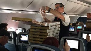 صور مهدئة للاعصاب.. طيار يوزع البيتزا على الركاب للتخفيف ..