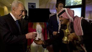 صورة شمعون بيرس يشرب القهوة الاردنية تثير غضب الاردنيين