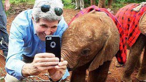 جون كيري في حديقة حيوان بكينيا.. وسيلفي مع فيل
