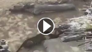شاهد كيف ضرب حارس الغابة النمر بالعصا.. وكيف لاذ الاخير ..