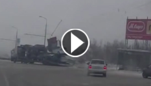 شاهد كيف تسببت شاحنة للسيارات بكارثة على طريق عام في روسيا ..