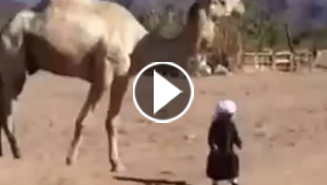 بالفيديو.. جمل يركل طفلا خليجيا ويطيح به ارضا