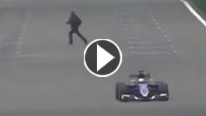 شاهد بالفيديو كيف اقتحم مختل عقليا سباق الفورمولا لقيادة ..