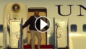 بالفيديو.. الله ستر لم يهو اوباما من اعلى سلم الطائرة