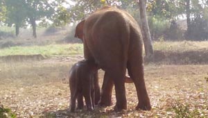 بالفيديو.. انثى فيل تمضي 11 ساعة وهي تحاول انقاذ صغيرها