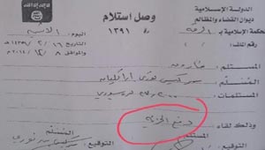 بالصورة: مسيحي يدفع الجزية لتنظيم داعش وهذا ايصال الدفع