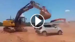 بالفيديو.. عمال غاضبون يحولون سيارة مشغلهم الى كومة من الحديد ..