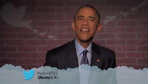 شاهد بالفيديو.. اوباما يقرأ بصوت عال التغريدات اللئيمة من ..