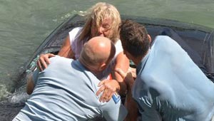 بالصور.. انقاذ امرأة من داخل سيارة غرقت في الميناء