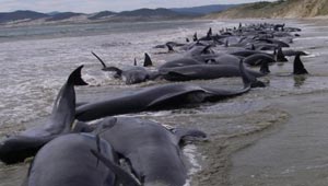 محاولة جبارة لانقاذ 170 حوتا علقت في طين نيوزيلندا