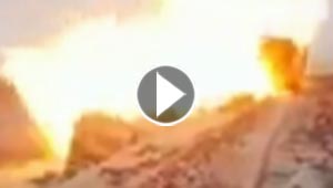 فيديو مروع لانفجار شاحنة التقطه رجل عن بعد امتار.. ونجا ..