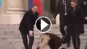 بالفيديو.. رئيسة وزراء الدنمارك تتعثر وتسقط امام قصر ..