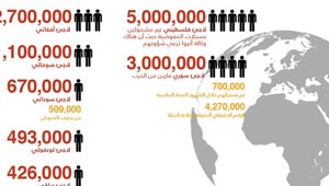 اعداد اللاجئين وجنسياتهم في العالم كما وردت في تقرير الامم ..