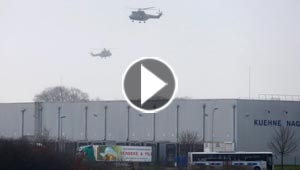 بالفيديو.. 5 مروحيات تحلق فوق مبنى يتحصن فيه منفذا الهجوم ..