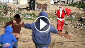 صور وفيديو بابا نويل في غزة يفاجئ الاطفال بين الانقاض