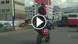 بالفيديو.. مغامر يقود دراجته النارية وقوفا في أحد شوارع ..
