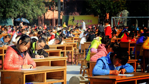 طريقة مبتكرة لمنع الغش.. اجراء الامتحانات في ملعب رياضي!!