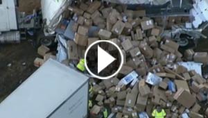 بالفيديو.. شاهد ما حدث للطرود بعد انقلاب شاحنة بريد اميريكية ..
