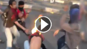 بالفيديو.. شاهد كيف اشتعلت زجاجة المولوتوف بيد قاذفها