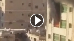 بالفيديو..طفلة تهرب من النار بالقاء نفسها من الطابق ..