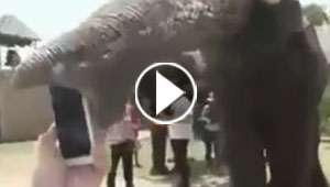 بالفيديو.. فيل يرفض التقاط الصور مع حسناء ويبتلع الآي فون