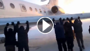 ابناء سيبيريا يدفعون طائرة متجمدة بايديهم العارية