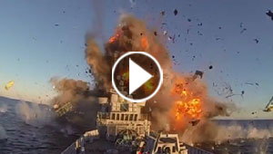 بالفيديو.. شاهد كيف دمر الصاروخ النرويجي فرقاطة في عرض البحر ..