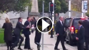 بالفيديو.. حراس الرئيس كاميرون في حالة هلع بعد احتكاك رجل ..