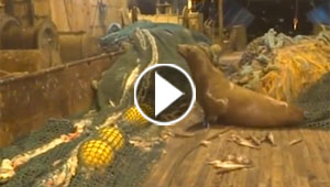 مارد يفلت من الشباك على شكل اسد بحري ويهاجم الصيادين ناشرا ..