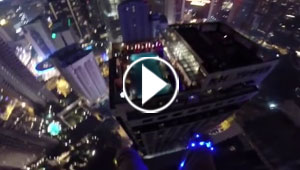 فيديو.. مظليان يفاجئان الاصدقاء بالهبوط بمسبح على ناطحة ..