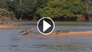 فيديو مرعب.. نمر امريكي يهاجم تمساحا ويقتله في ثوان!