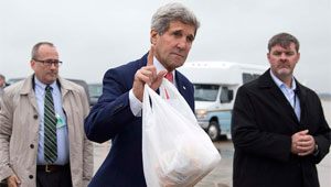 ماذا كان يحمل جون كيري بالكيس الابيض الذي شغل مواقع ..