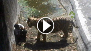 بالفيديو.. نمر يقتل شابا تسلل الى خندقه في حديقة حيوان ..
