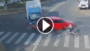 مصادفات طريفة تبعد موتا محتما عن سائق دراجة.. شاهد الفيديو