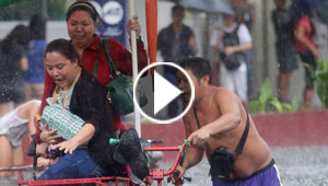 بالفيديو.. انقاذ اطفال بالفلبين بعد فيضان حوّل شوارعها لأنهر ..